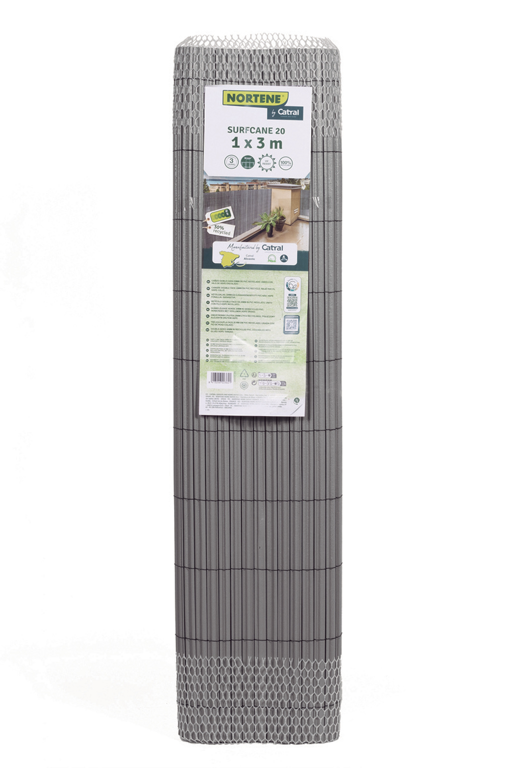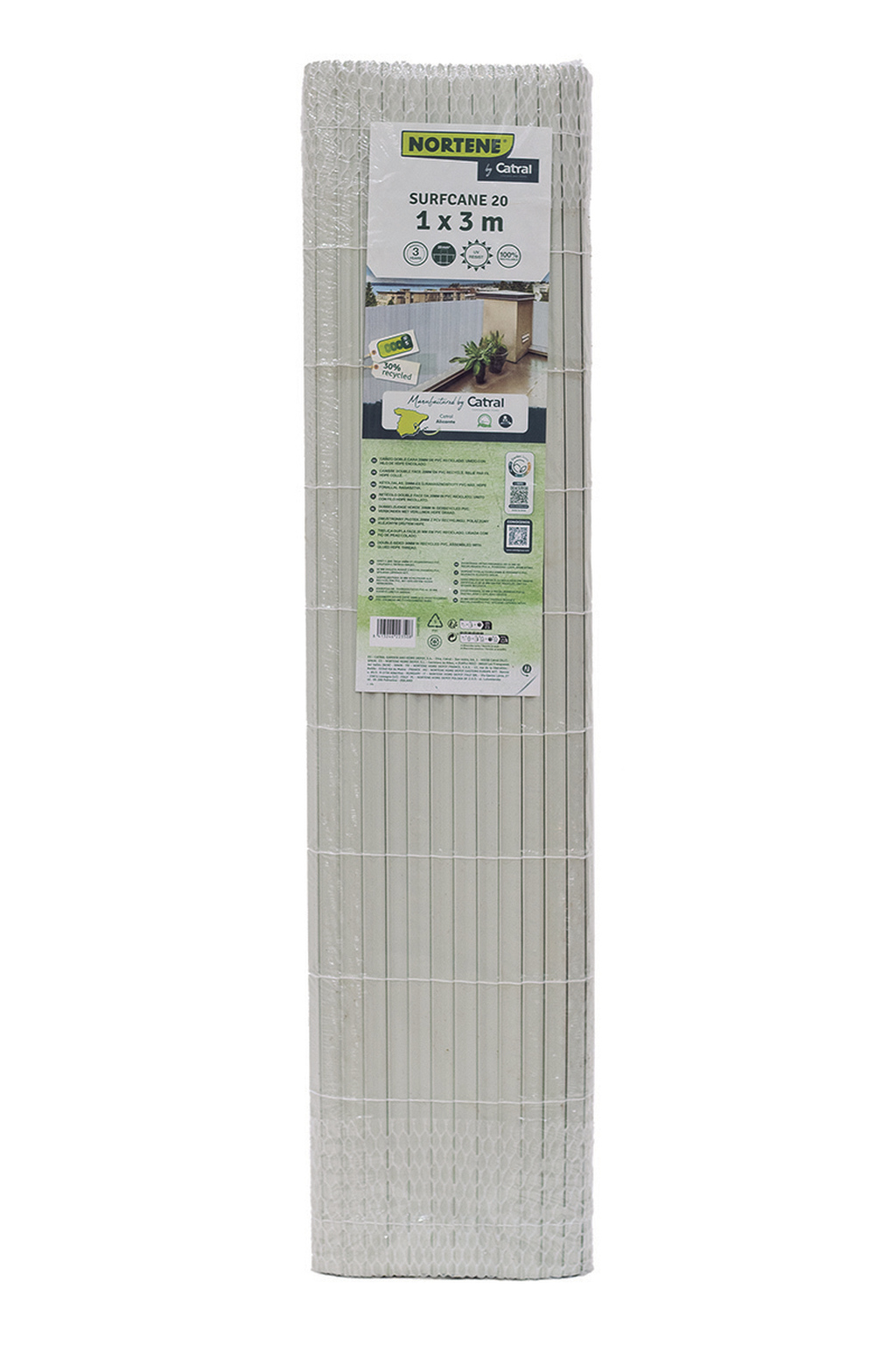 Prodotto sviluppato dal reparto R&S del Gruppo Catral, con una composizione unica. Questo permette di ridurre il consumo di plastica del 10% pur mantenendo le caratteristiche del prodotto. Integra almeno il 30% di materiali riciclati. Il filo di tessitura è in PEHD.